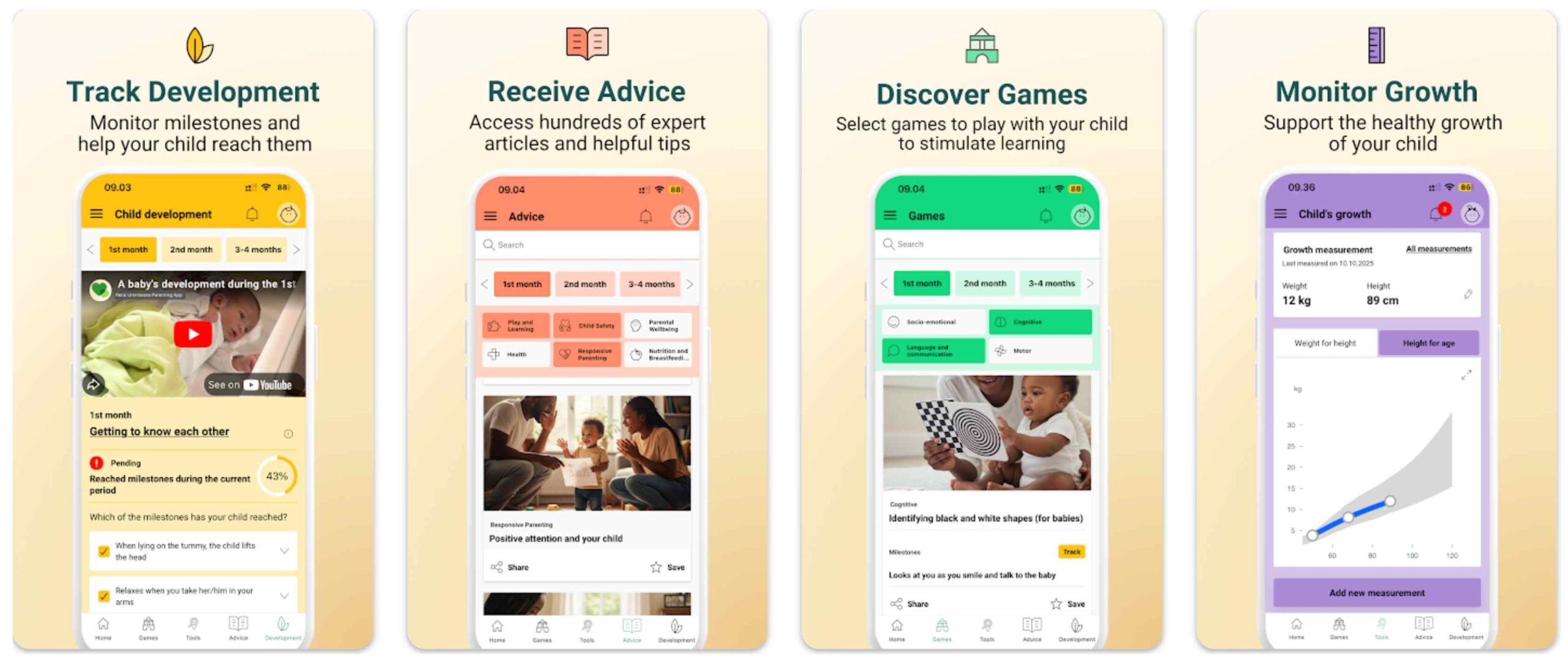 The app also includes tools that allow caregivers to track developmental milestones, monitor growth, and access expert backed parenting advice.
